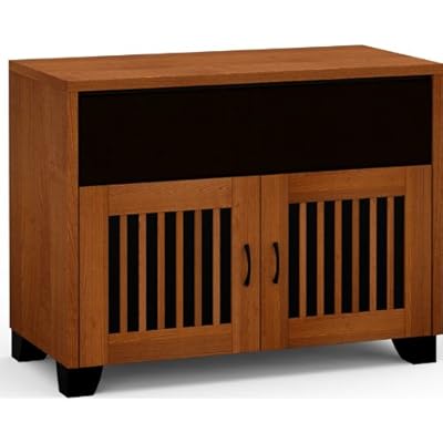 Salamander Designs Chameleon Sonoma 329 / Twin-Width Cabinet with Center Opening and Removable Cloth Grille Salamander Designs Sonoma Collection features a mission-influenced style, has doors that contrast vertical wooden strips with black, micro-perforated metal inserts. Its American Cherry tone and relaxed look work especially well in transitional rooms. The Chameleon Collection of Home Theater Furniture is as bold and unique as the rooms it is designed to compliment and the electronics and is designed to support. All Salamander Chameleon Pieces Feature: •Fully Assembled Quality Furniture with Solid Wood Doors and High Quality Natural Wood Veneers •Extruded aluminum framework, concealed from view and designed to hold hidden high tech accessory devices. •Infinitely adjustable shelves rated to support 75 lbs each •Easy off rear panels with built in ventilation system with optional / available active cooling system •Soft-close doors •Optional Integrated high tech accessories* •Some units have a removable cloth grill to conceal a center channel speaker Specifications Sonoma 329: •Doors - Solid vertical wooden strips with black, micro-perforated metal inserts •Finish Base: American Cherry, Black Wooden Feet Dimensions Sonoma 329: •Overall: 44W x 21.25D x 31.75H •Interior Sections: 19.75W x 18.5D x 17.75H •Center Opening: 40.5W x 18.25D x 9H *Salamander Designs Chameleon Collection offers High Tech Accessories to make your television or Home Theater viewing even more exciting and easy. Options for Chameleon Collection cabinets, include (1) Extended Rear Panels to better accommodate oversize (depth) components, and an (2) Extended Rear Panel with an Active Cooling Kit.