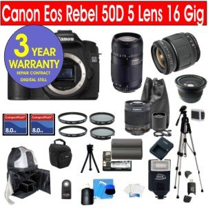 Best1 Camera Kit includes all BRAND NEW merchandise with manufacturer supplied accessories plus FULL USA warranties . Nikon D90 12.3 MP Digital SLR Camera + Rokinon 500mm HD Telephoto Zoom Lens with 2x Converter (=1000mm) + .40X Wide Angle Lens . Tamron 28-80mm f/3.5-5.6 Aspherical Lens + Tamron 75-300 f/4-5.6 LD Lens + 4 Piece Close Up Macro Kit . 16 GB Memory Card + Multi-Coated UV Filter (2) + Multi-Coated Polarizer Filter . Digital Slave Flash + 50" Tripod + Deluxe Padded Camera Bag + 6 Piece Accessory Kit + 3 Year Warranty Repair Contract . review