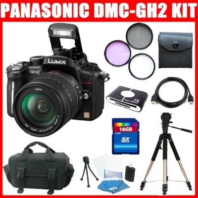 What's In the Camera Box * Panasonic Lumix DMC-GH2 Digital Camera * Lumix G Vario 14-140mm F/4.0-5.8 Lens * Front Lens Cap* Rear Lens Cap* Lens Hood * Lens Storage Bag * Battery Charger* Battery Pack * DMW-BLC12PP Battery* Body Cap * AV Cable * USB Connection Cable * Shoulder Strap* Stylus Pen * CD-ROM * 1-Year Limited Warranty Items Included With Your Package: 1 - 3Pcs Filter Kit(UV, Circular Polarizer and Flourescent Filter ) with Case 1 - 16GB SDHC Memory Card 1 - Memory Card Reader 1 - Mini To Regular HDMI Cable 1 - Deluxe Soft Carrying Case 1 - 57" Aluminum Tripod w/ carrying bag 1 - Cleaning Kit included(Mini Travel Tripod, Top Quality Screen Protector, Cleaning Fluid, 5pc Cotton Swabs, Soft-Tex Fiber Cloth)