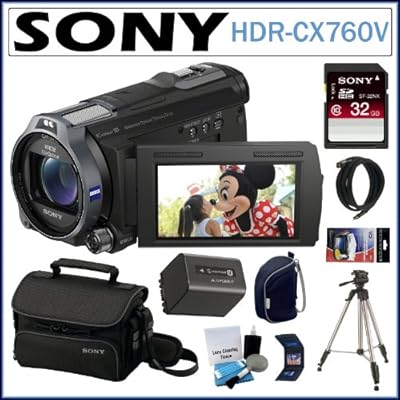 Capture and store hours of pro-quality Full HD 60p/24p videos and sharp, 24.1MP still images with the HDRCX760V Handycam camcorder featuring improved Balanced Optical SteadyShot image stabilization. Enjoy ultra-stable video from its 10X Optical/17X extended digital zoom lens, and expand your creative options using manual controls and CinemaTone presets. KIT INCLUDES:* SONY 32GB SDHC.* MINI HDMI CABLE.* SONY CASE.* SONY BATTERY PACK.* SUNPAK TRIPOD.* SCREEN PROTECTORS.* MEMORY WALLET.* CLEANING KIT.