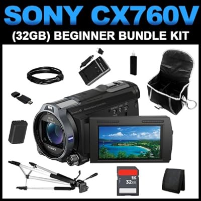 ***Included in your Sony HDR-CX760V High Definition Handycam Camcorder (Black) (32GB Beginner Bundle Kit)***Sony HDR-CX760V High Definition Handycam Camcorder (Black)Sony HDR-CX760V High Definition Handycam Camcorder (Black) can record up to 38 hours of HD LP video footage. It shoots Full HD 1920 x 1080 60p/24p video and can also take 24.1 megapixels still images. It features a back-illuminated Exmor R CMOS sensor that's ideal for low-light situations. Plus, it features a 26mm wide angle Carl Zeiss Vario-Sonnar T Lens that supports 10x optical zoom and 17x extended zoom. There's also a 3.0" Xtra Fine LCD touch screen display for easy recording and instant playback.Home/Car AC/DC ChargerCharge your battery at home and on the road. Smart LED indicator shows charging status.Replacement BatteryLithium-Ion battery for your camcorder.(Class 10) 32GB SD Memory Card Fastest read/write speeds on the market. High quality and reliability.SD/SDHC Card USB Reader/WriterEasy plug and play. Use with SD/SDHC/microSD and other formats.Memory Card WalletSafe storage for your memory cards.6' HDMI to HDMI Mini CableHigh-Definition signal up to 1080p.Carrying CaseMedium carrying case. Includes shoulder strap. Custom adjustment.57" Tripod Full Size Photo/Video TripodExtends to 57-Inch. 3 way pan head....that's not all...***Also included in your kit***Camcorder Cleaning MixtureCleaning Cloth3 LCD Screen Protectors Squeegee Card