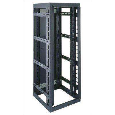 DRK19-44-31PROLRD Rackrail Type: Square Hole (Cage-Nut style), Rear Door: Not Included Specify a DRK for use in network patching and other high-density cable management applications. Wide 30'' footprint provides generous amounts of internal cable space and accommodates 19'' and 23'' panel width equipment. Middle Atlantic enclosure racks are contractor-friendly and have been designed with many essential time-saving features. Structural Features: -Fully welded construction provides a 2,500 lb. weight capacity -14-guage steel top and bottom, one-piece steel sides and four front to rear 1/8'' thick internal braces made from structural steel all combine to provide unparalleled protection for sensitive components. -Finished in a durable black textured powder coat Thermal Management: -Standard vented rear door is reversible to allow opening from either direction -Standard 10'' fan top comes with a fan guard (10'' fan optional) Cable Management: -Standard two front-mounted vertical cable ducts featuring abundant cable entry points and a full-length hinged door with three-point magnetic catches -1/2'', 3/4'', 1'', and 1-1/2'' electrical knockouts on removable top and bottom rear plates -Rail brackets are pre-punched for built-in cable management Time Savings: -Numbered rackspace increments speed equipment mounting -Standard front and rear adjustable rackrail available for a multitude of equipment mounting needs -Includes 100 rack screws Code Compliancy: -Grounding/bonding stud in base of enclosure facilitates the proper grounding and bonding of electric equipment, as per NEBS and NEC standards -UL Listed in the US and Canada DRK Series 19 Panel Width Cable Management Enclosure Specifications Helpful Hints and Advice Rackrail Useable Rackspaces Panel Width Racking Height Overall Height Overall Width Useable Depth Outside Depth Power Strip Rear Door 10-32 threaded 44U space 19'' 77'' 83 1/2'' 30'' 24 1/4''