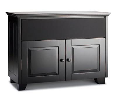 Best1 Twin-width A/V cabinet with distressed black finish and antique stylings . 2 solid side-by-side doors discreetly hide your components . Top opening is faced with removable grille that hides center-channel speaker . Holds 4 components in main compartment; supports 42-inch TVs (200 pounds) . Includes leveler feet; measures 45.25 x 31.75 x 21.25 inches (W x H x D) . review